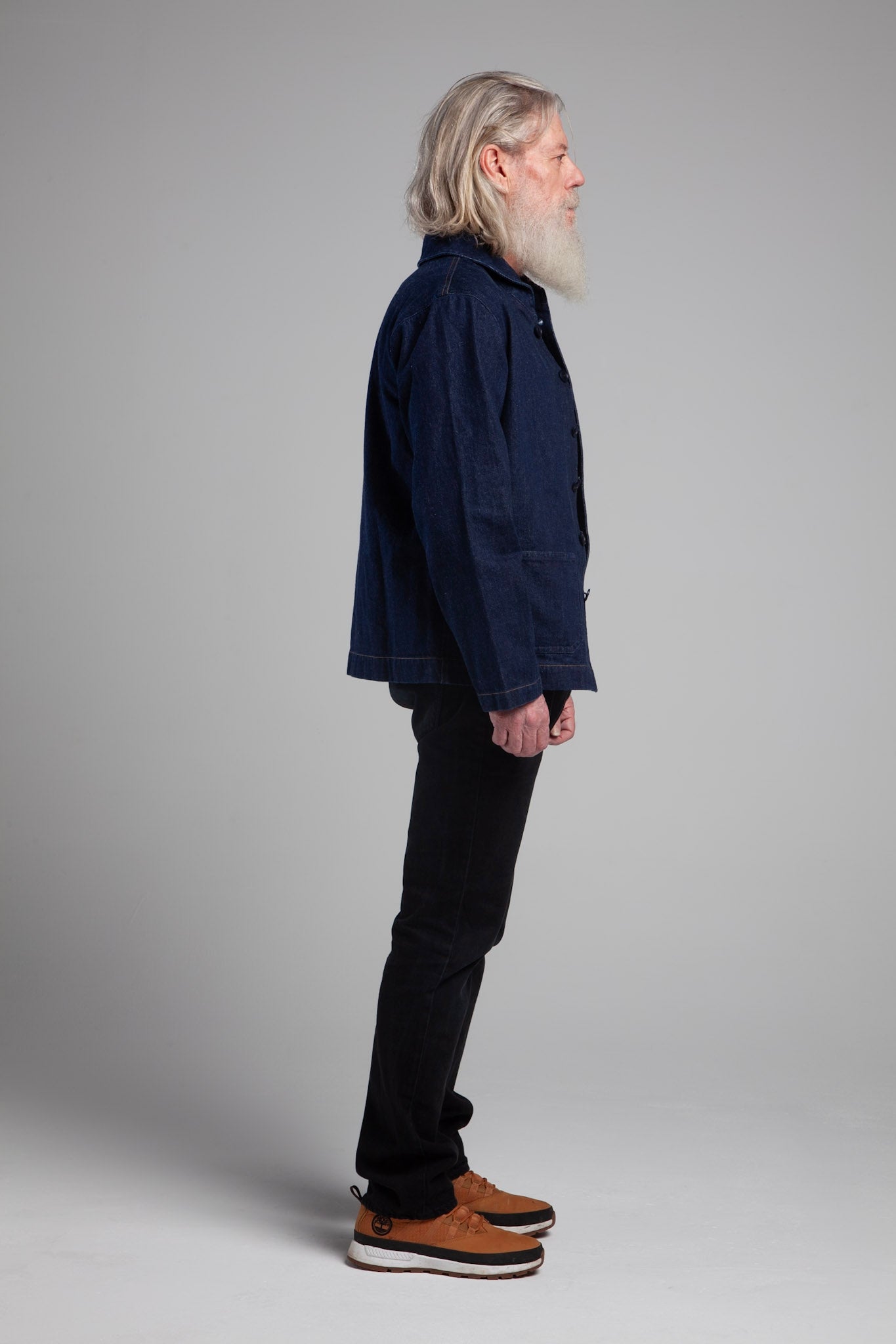 This is a relaxed, easy piece. The Cone selvedge softens beautifully and the cut is generous enough to throw over a light knit. It works just as well with jeans and boots in the city as it does thrown over a tee with shorts on a warm evening at the beach.